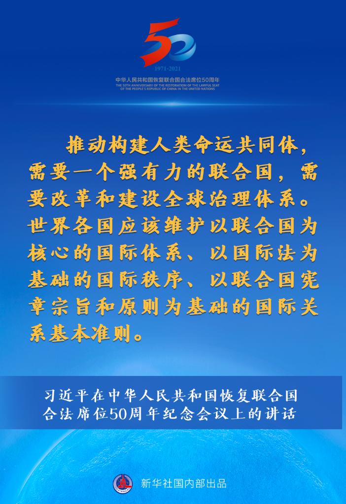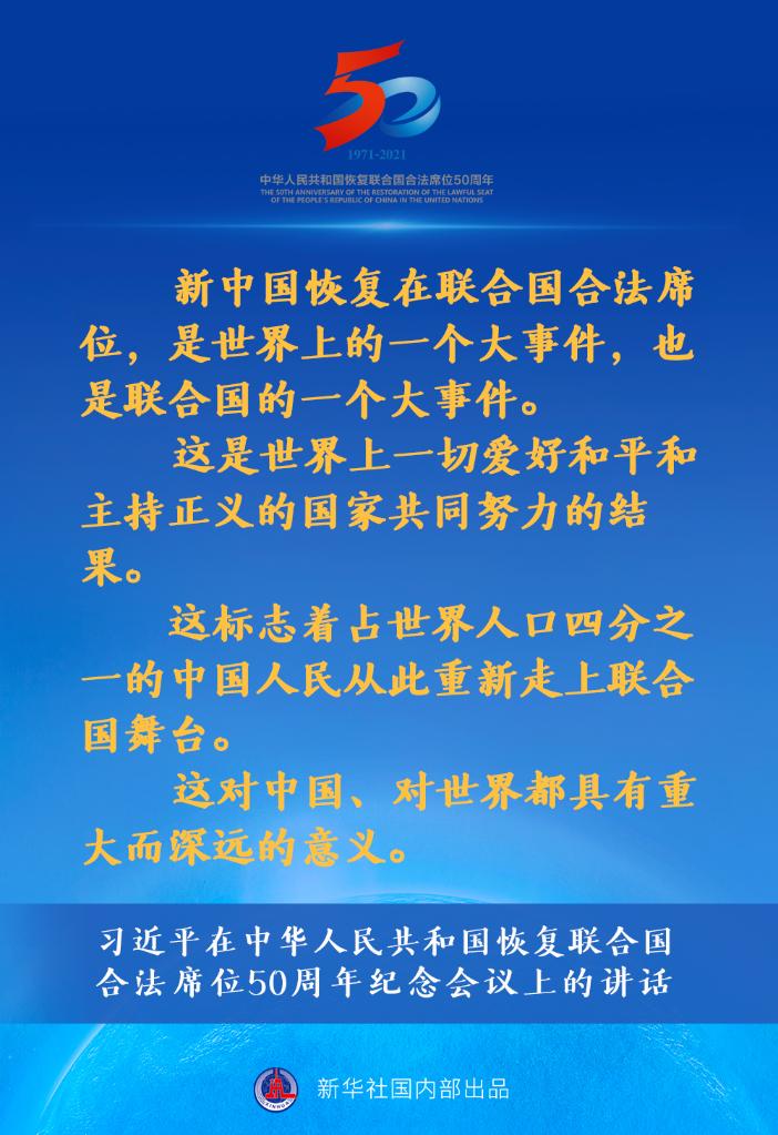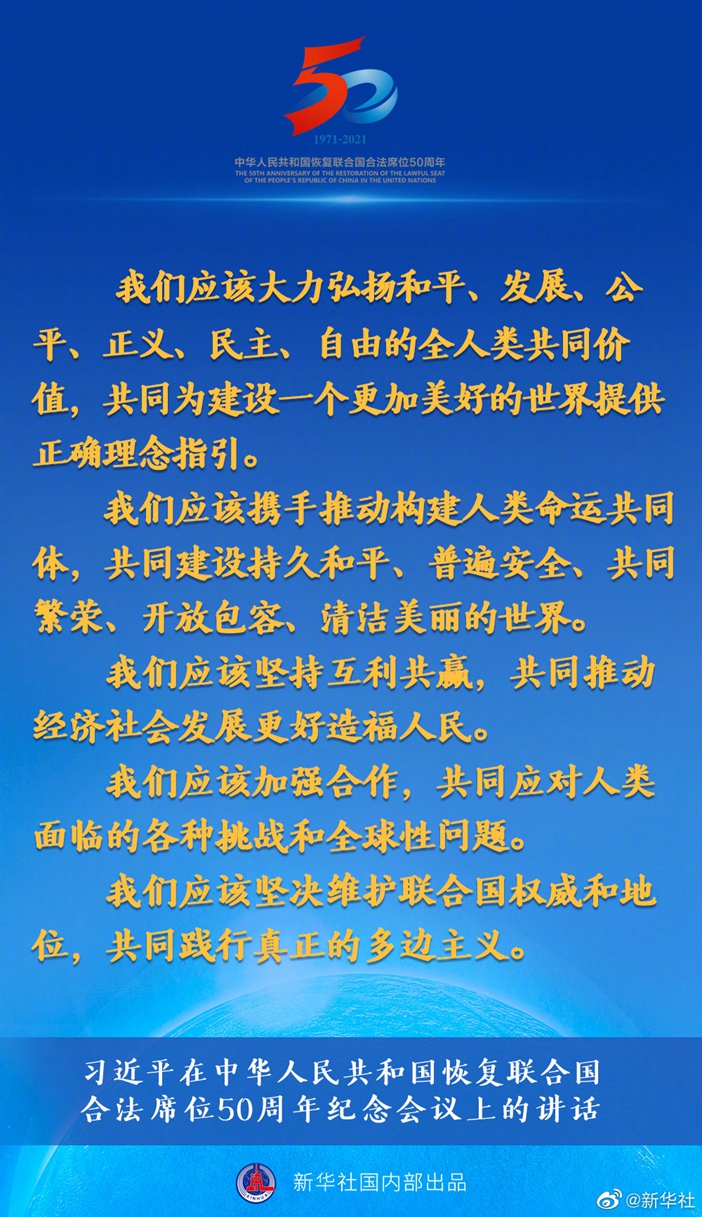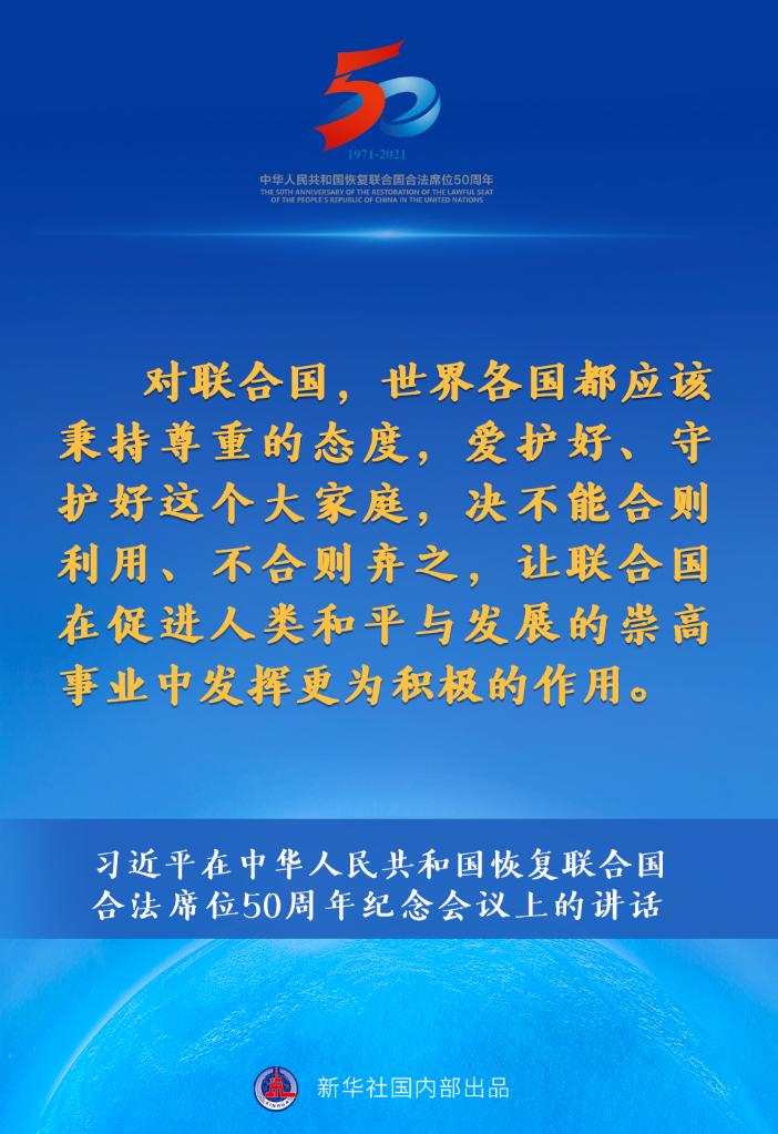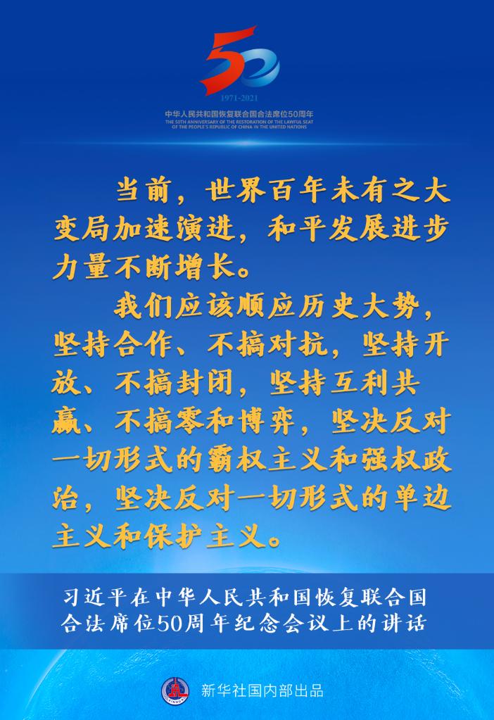 习近平在中华人民共和国恢复联合国合法席位50周年纪念会议上的讲话要点速览