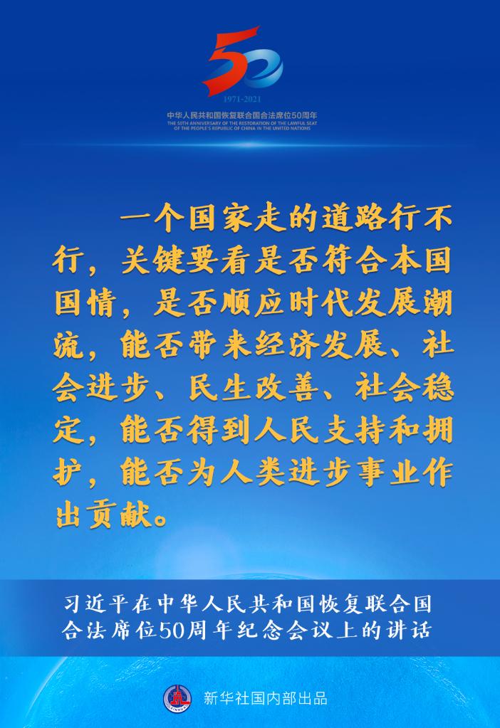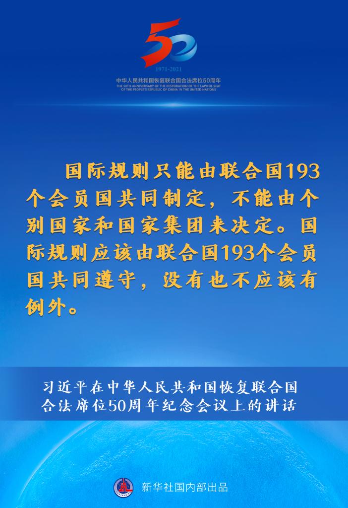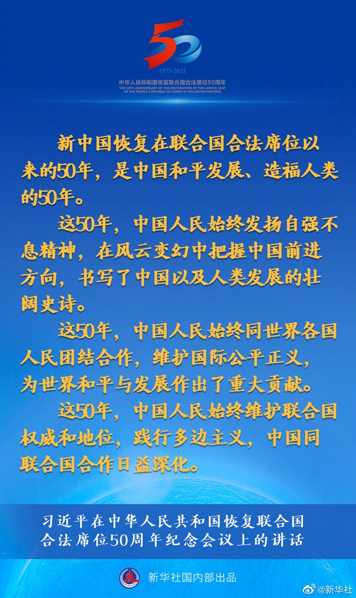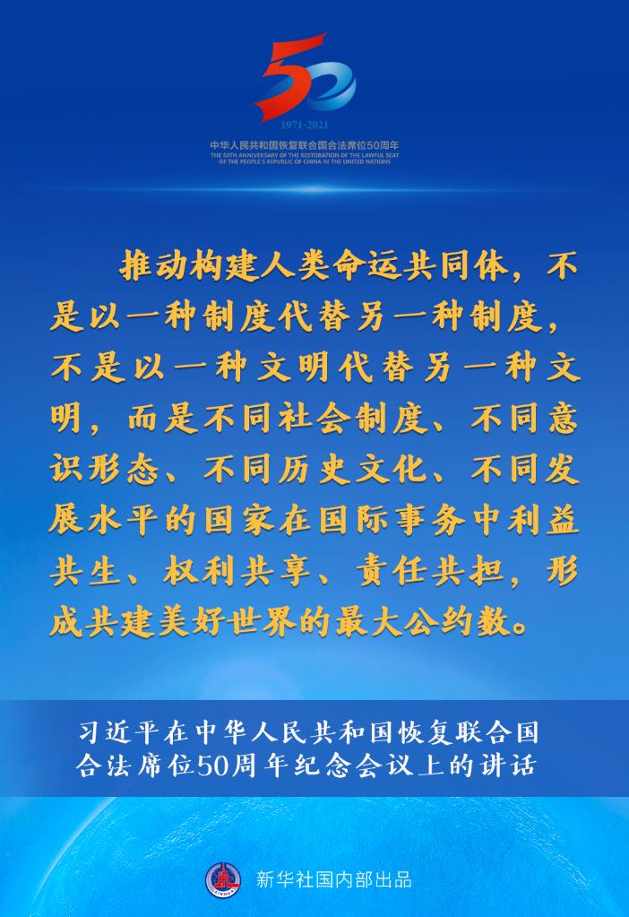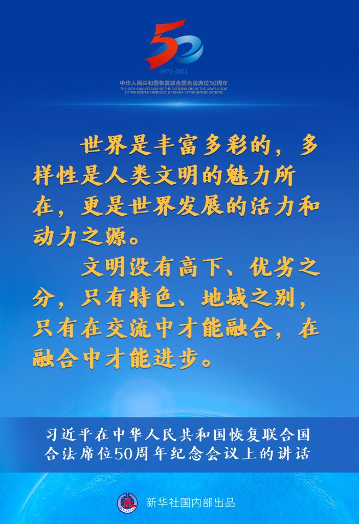 习近平在中华人民共和国恢复联合国合法席位50周年纪念会议上的讲话要点速览