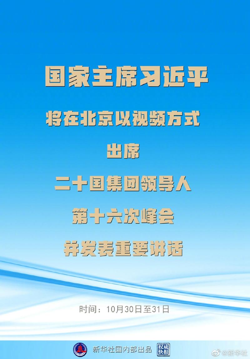 外交部发言人华春莹29日宣布:应意大利共和国总理德拉吉邀请,国家主席习近平将在北京以视频方式出席10月30日至31日举行的二十国集团领导人第十六次峰会并发表重要讲话。