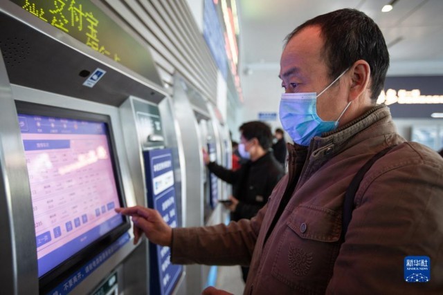 1月3日,旅客在南京火车站通过自助售票机购买火车票。当日,铁路部门开始发售2022年春运火车票。新华社发(苏阳 摄)