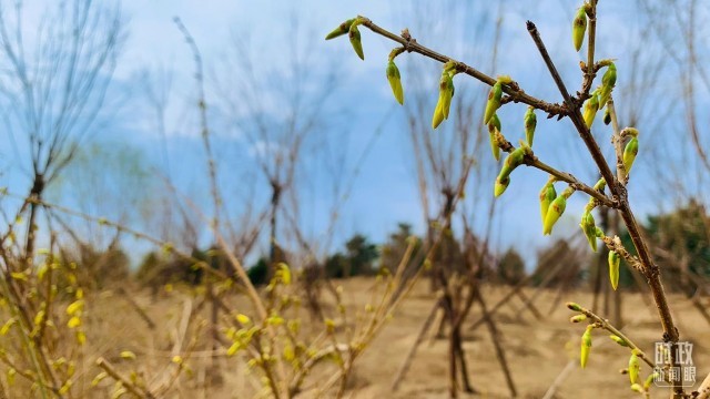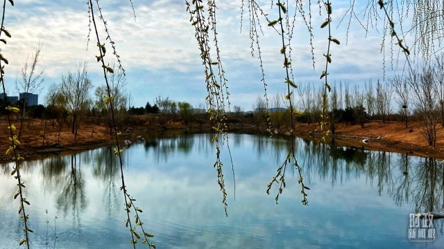 △公园内的柳树刚刚抽出新叶。(总台央视记者程铖拍摄)