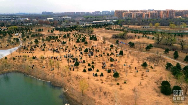 △当天的植树点位于大兴新城城市休闲公园。(总台央视记者刘岳、陆博第拍摄)