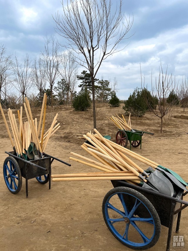 △植树现场的铁锹。(总台央视记者赵化拍摄)