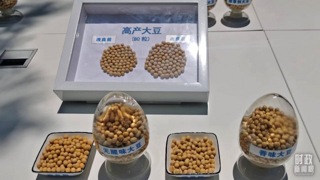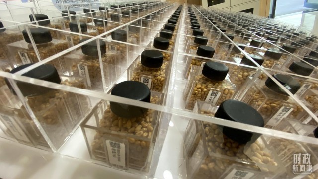 △实验室展出小麦、大豆、水稻等种子。(总台央视记者郭晓龙拍摄)