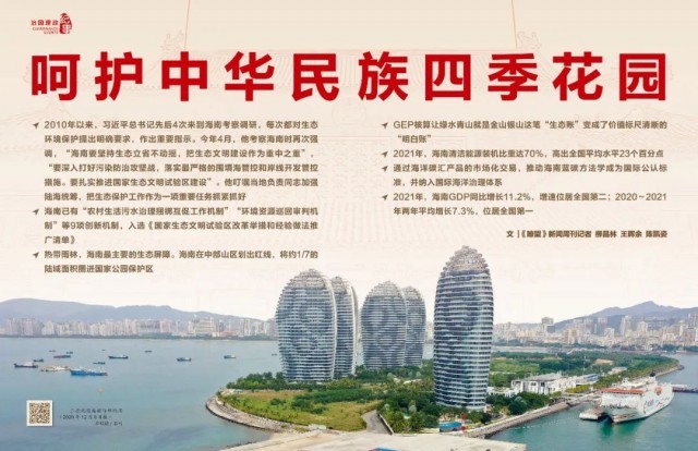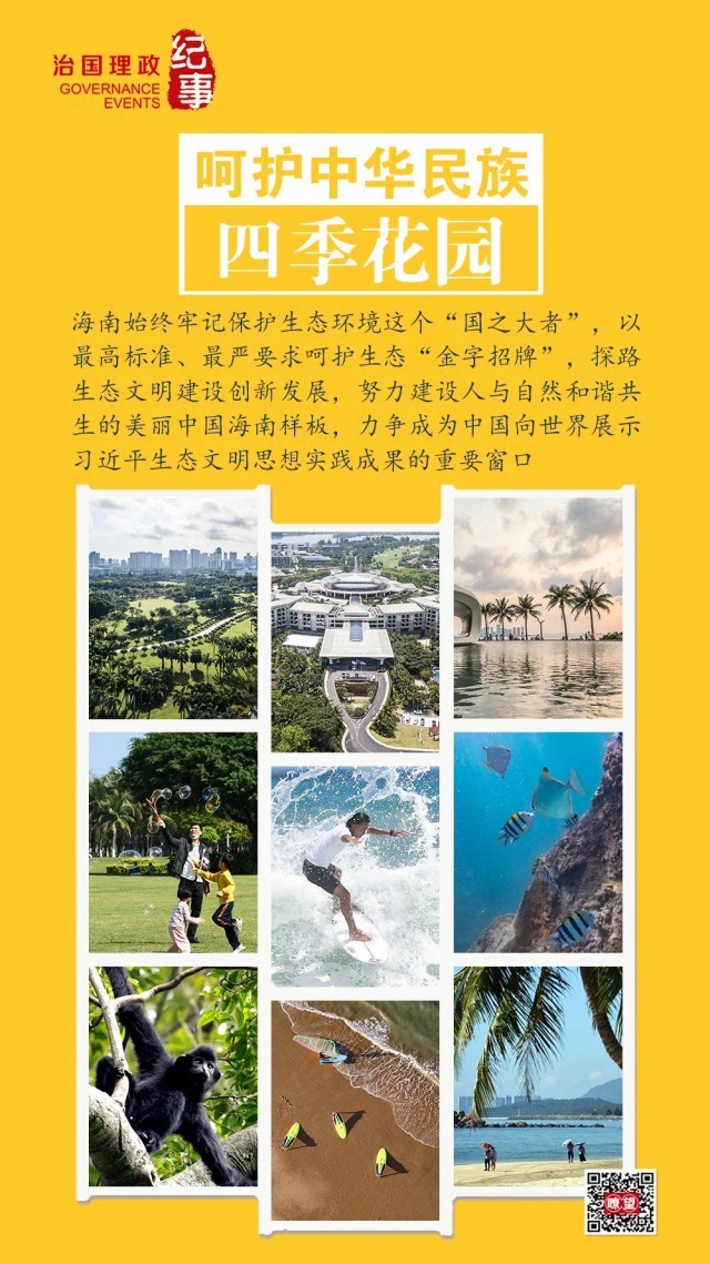 “海南生态环境是大自然赐予的宝贵财富,必须倍加珍惜、精心呵护,使海南真正成为中华民族的四季花园。”2018年4月13日,习近平总书记在庆祝海南建省办经济特区30周年大会上指出。