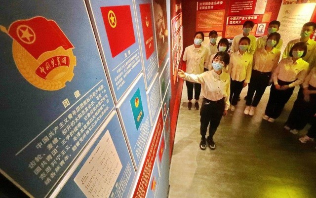 △2022年5月3日,位于河北省秦皇岛市的共青团海港区委团史馆,国网秦皇岛供电公司团员正在参观学习。