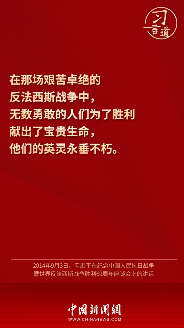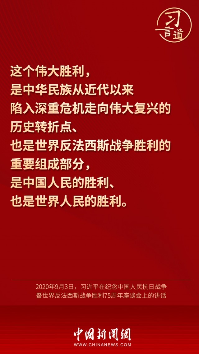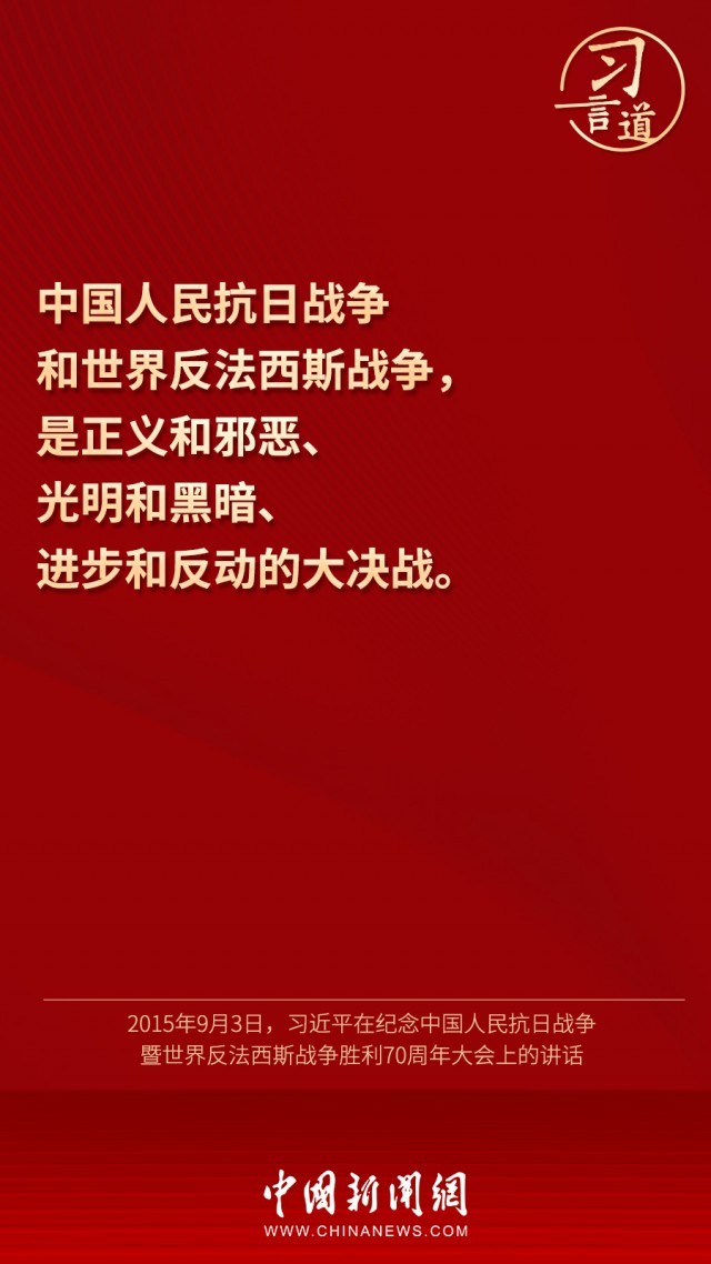 9月3日是中国人民抗日战争胜利纪念日,也是世界反法西斯战争胜利纪念日。一起回顾习近平总书记关于抗战的重要论述,铭记历史,珍爱和平。