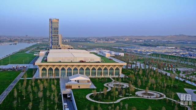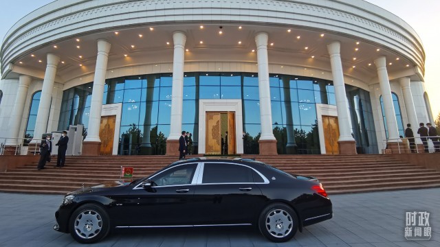 15日上午,习主席乘车抵达撒马尔罕国际会议中心。这座建筑是今年4月新落成的。接待习主席来访,是它首次用作国事活动举办场地。