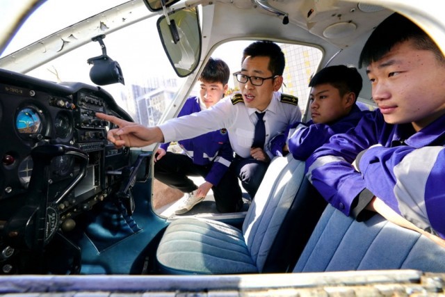 ↑2020年12月17日,河北省唐山市丰润区综合职业技术教育中心飞机维修专业教师在给学生上课。