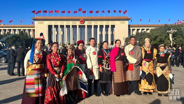 △10月22日上午,西藏代表团代表盛装出席大会。(西藏台扎西玉措拍摄)