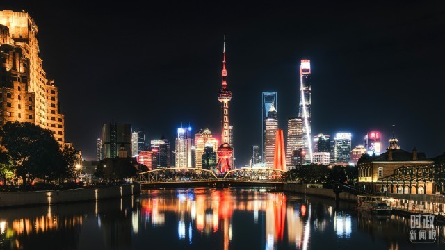 △上海乍浦路桥陆家嘴“喜庆二十大”主题夜景(图/视觉中国)