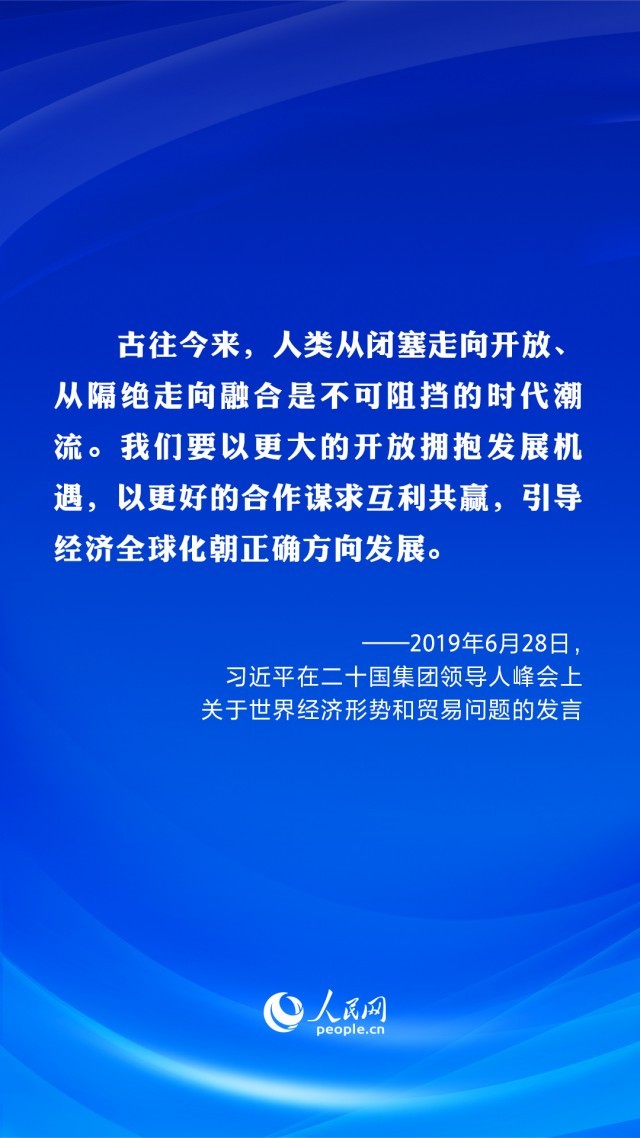 习近平主席出席历次二十国集团峰会,多次围绕“共赢”主张发表重要论述,表明要坚持走开放发展、互利共赢之路的坚定决心。