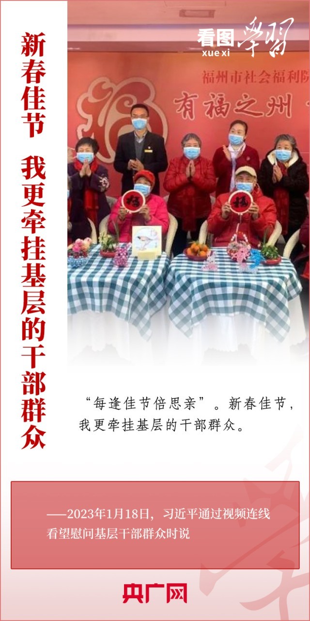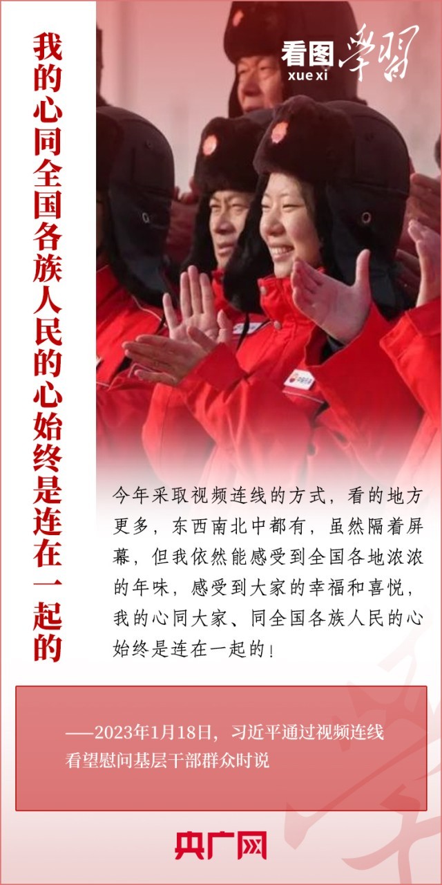这些年来,每逢春节前夕,习近平总书记都要看望慰问基层干部群众,倾听群众心声,关心群众冷暖。总书记说,“我的心同大家、同全国各族人民的心始终是连在一起的。”“父老乡亲的话我都记在心里。”这些温暖牵挂,句句暖人心。
