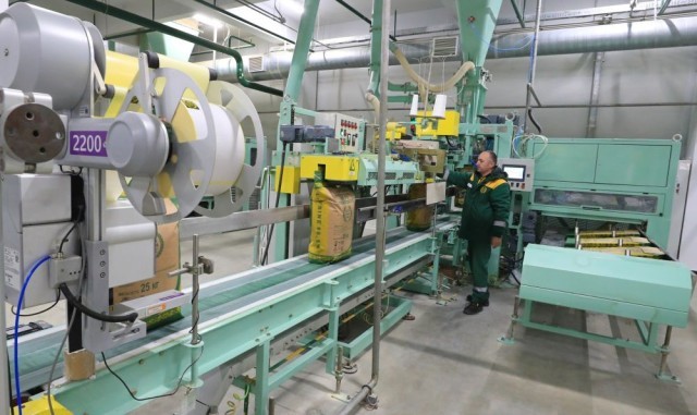 在白俄罗斯明斯克州,工人在白俄罗斯国家生物技术公司全循环高科技农工综合体项目车间内工作。