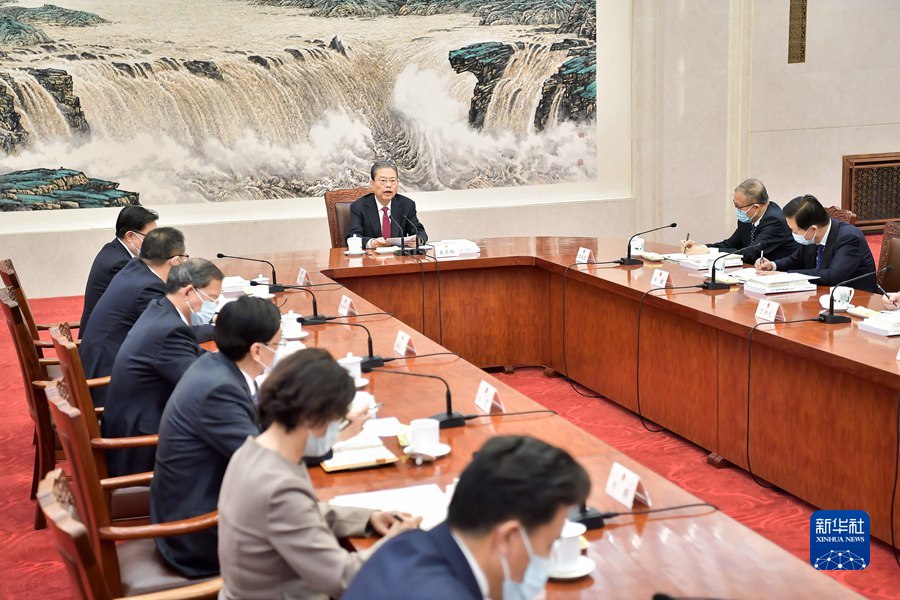 3月14日,十四届全国人大常委会第一次委员长会议在北京人民大会堂举行。赵乐际委员长主持会议并讲话。新华社记者 李涛 摄