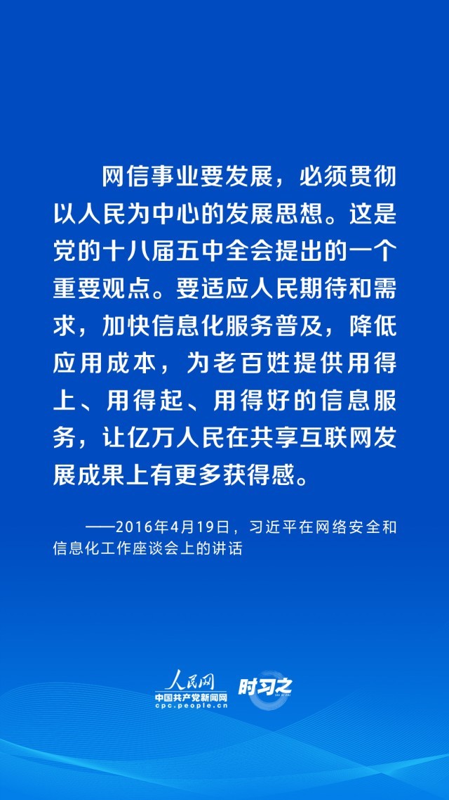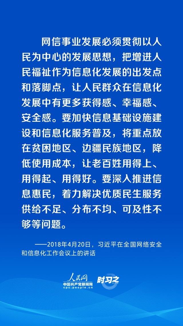 “网信事业要发展,必须贯彻以人民为中心的发展思想。”党的十八大以来,习近平总书记高度重视网络信息化建设,始终坚持把增进人民福祉作为信息化发展的出发点和落脚点,让人民群众在信息化发展中有更多获得感、幸福感、安全感。