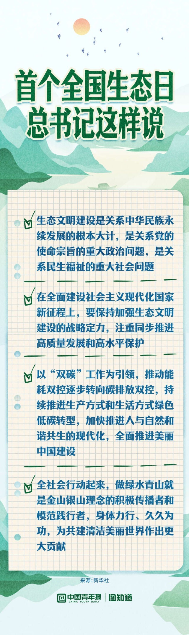 在首个全国生态日到来之际,习近平总书记作出重要指示强调,生态文明建设是关系中华民族永续发展的根本大计。总书记号召全社会行动起来,做绿水青山就是金山银山理念的积极传播者和模范践行者。收藏金句,一起学习!