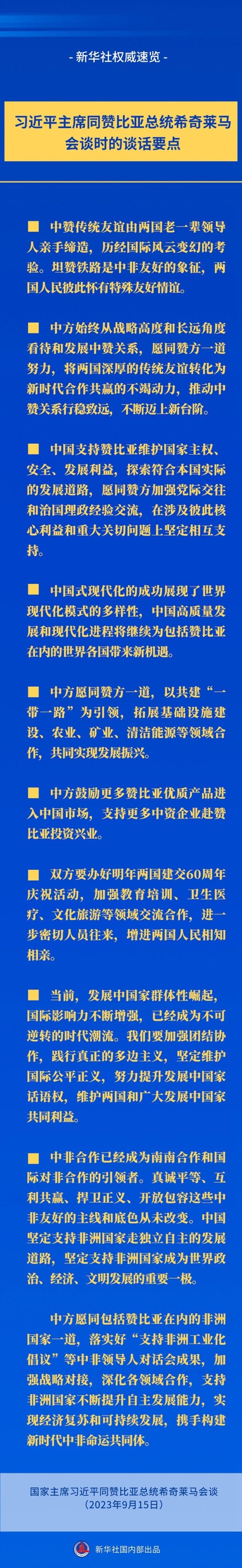 新华社权威速览丨习近平主席同赞比亚总统希奇莱马会谈时的谈话要点