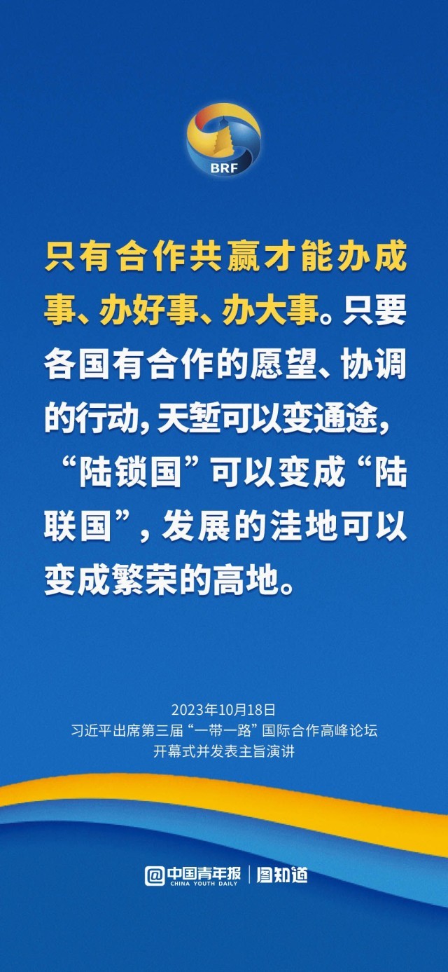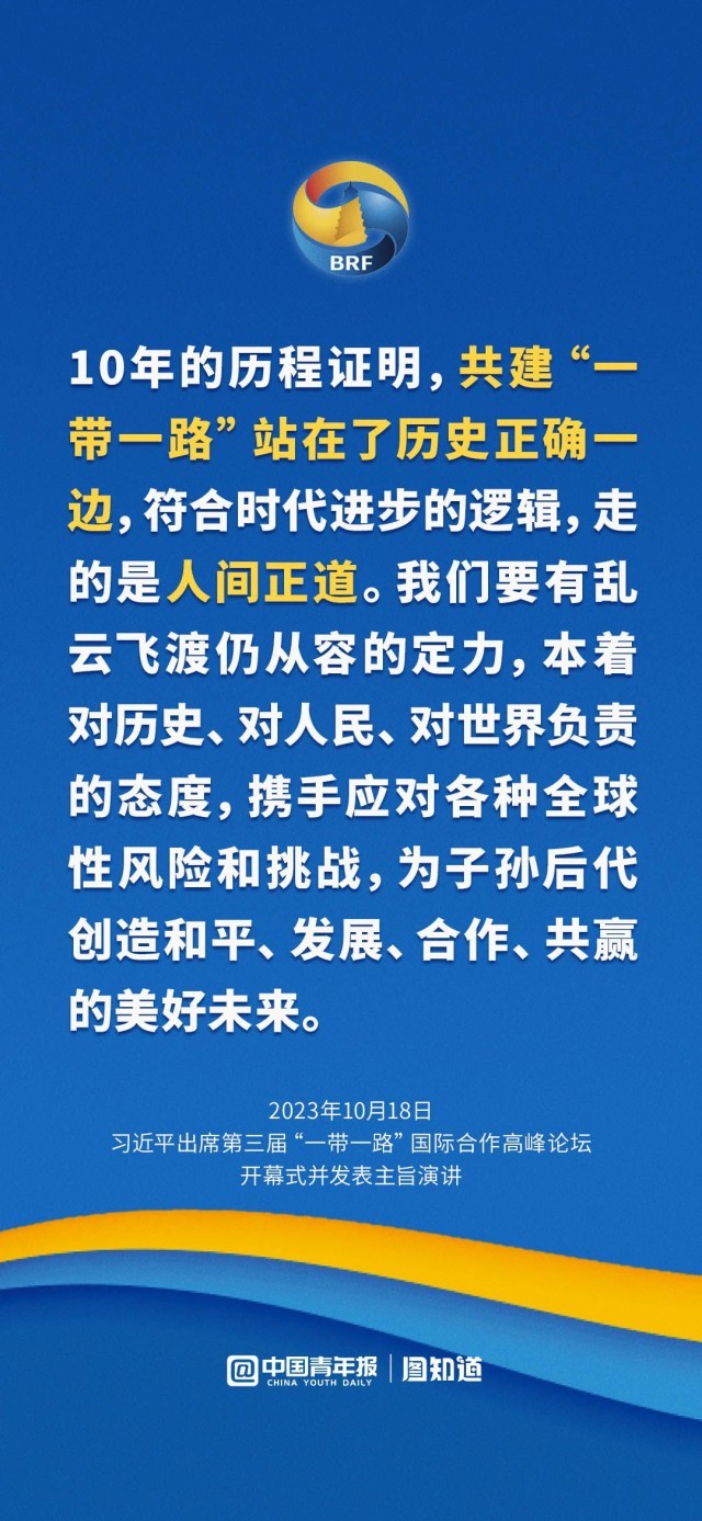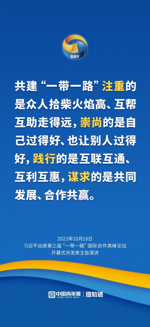 10月18日,国家主席习近平在第三届“一带一路”国际合作高峰论坛开幕式上发表主旨演讲。10年来,中国坚守初心,推动共建“一带一路”国际合作从无到有,蓬勃发展,取得丰硕成果。绵亘千年的古丝绸之路在新时代焕发新活力,150多个国家、30多个国际组织签署共建“一带一路”合作文件,为建设开放包容、互联互通、共同发展的世界携手同行。推动共建“一带一路”进入高质量发展新阶段,这些理念至关重要。