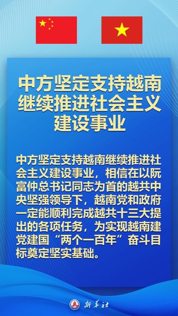 两位总书记都认为,中越作为友好近邻,理想相同,理念相通。作为好邻居、好伙伴、好兄弟、好同志,中越构建具有战略意义的命运共同体具有天时、地利、人和的独特优势。双方应该继承老一辈领导人缔结的传统友谊,共同努力构建命运共同体,走好各自的现代化道路,实现互利共赢、美美与共,造福两国人民,也为地区和平与繁荣作出积极贡献。