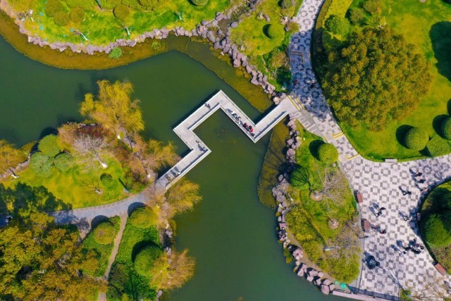 2022年3月8日拍摄的月湖景区(无人机照片)。新华社发(胡学军摄)