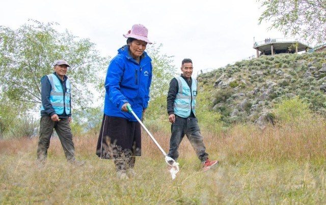 每天上午9点,白玛乔准时带好工具出发。修补围栏、阻止不文明行为、捡拾垃圾……白玛乔通常要围着雅尼湿地走上半天。管护途中,遥远的路程是考验,顶着风浪划船巡查亦是家常便饭。