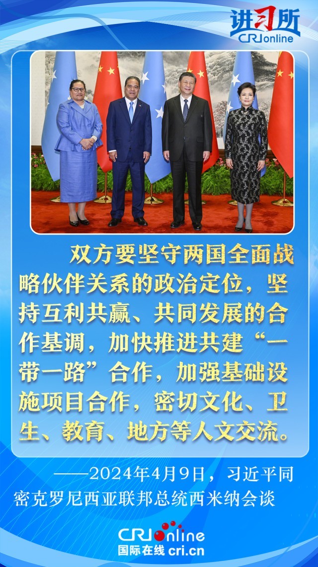 4月9日下午,中国国家主席习近平在北京同密克罗尼西亚联邦总统西米纳举行会谈,此访是西米纳总统就任以来首次访华,两国领导人就双边关系发展及共同关心的问题深入交换意见。