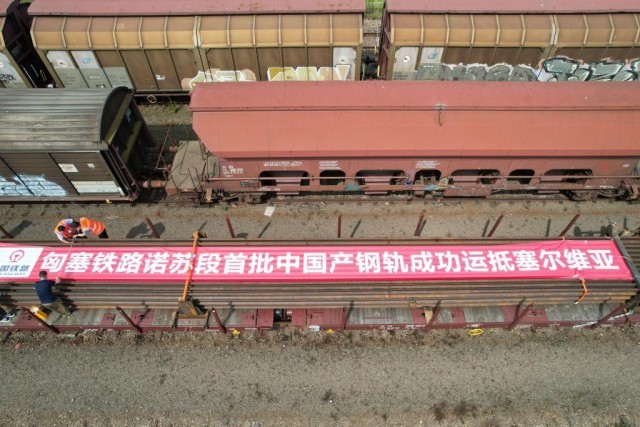 2023年6月14日,在塞尔维亚诺维萨德,匈塞铁路诺苏段首批中国产钢轨运抵塞尔维亚。