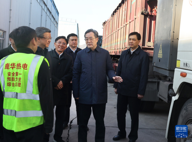 11月20日至22日,中共中央政治局常委、国务院副总理丁薛祥在山东、河北调研。这是11月22日,丁薛祥前往河北石家庄的华电石家庄鹿华热电公司,就做好迎峰度冬保暖保供情况进行调研。新华社记者 刘卫兵 摄