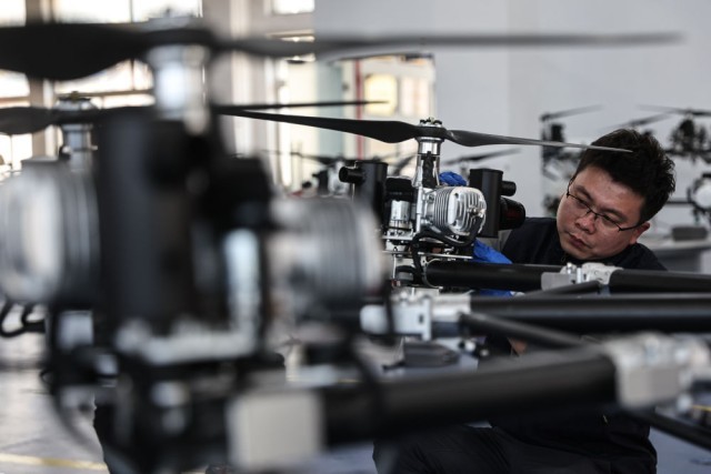 在辽宁省沈阳市沈北新区的优选空天科工集团,工程师对一架待交付的应急消防无人机进行安全检查(2025年4月25日摄)。新华社记者 潘昱龙 摄