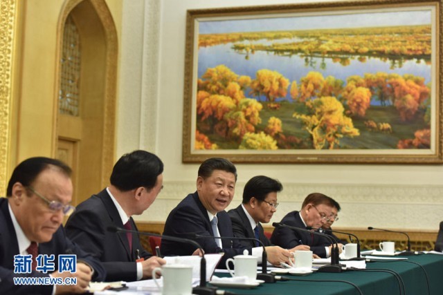 2017年3月10日,习近平总书记参加十二届全国人大五次会议新疆代表团的审议。新华社记者 李涛 摄