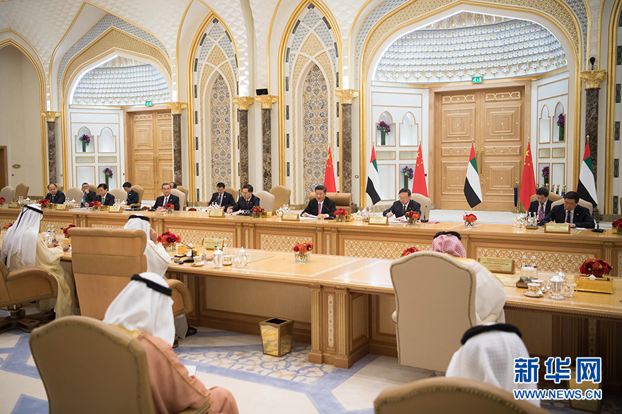 7月20日,国家主席习近平在阿布扎比同阿联酋副总统兼总理穆罕默德、阿布扎比王储穆罕默德举行会谈。新华社记者李学仁摄