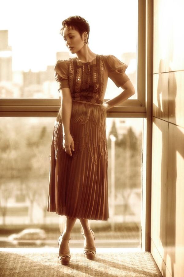 演员宁静惊艳短发造型 全新发布复古写真