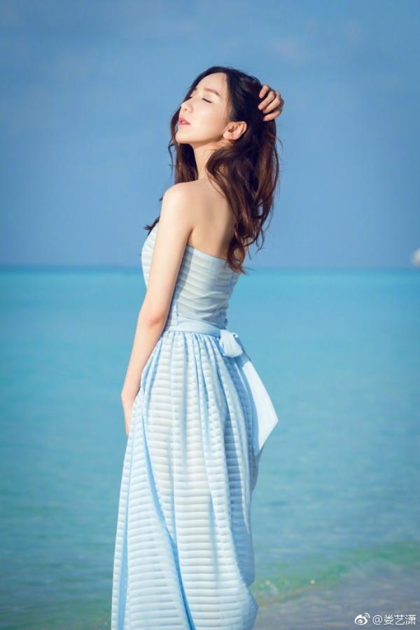 3月20日下午,娄艺潇在微博po出自己的海边漫步写真大片。她身穿浅蓝色条纹抹胸裙,在海边漫步,时而低头浅笑,时而闭眼感受海风轻抚,又或是在绿植前直视镜头微笑,清新甜美气质尽显。