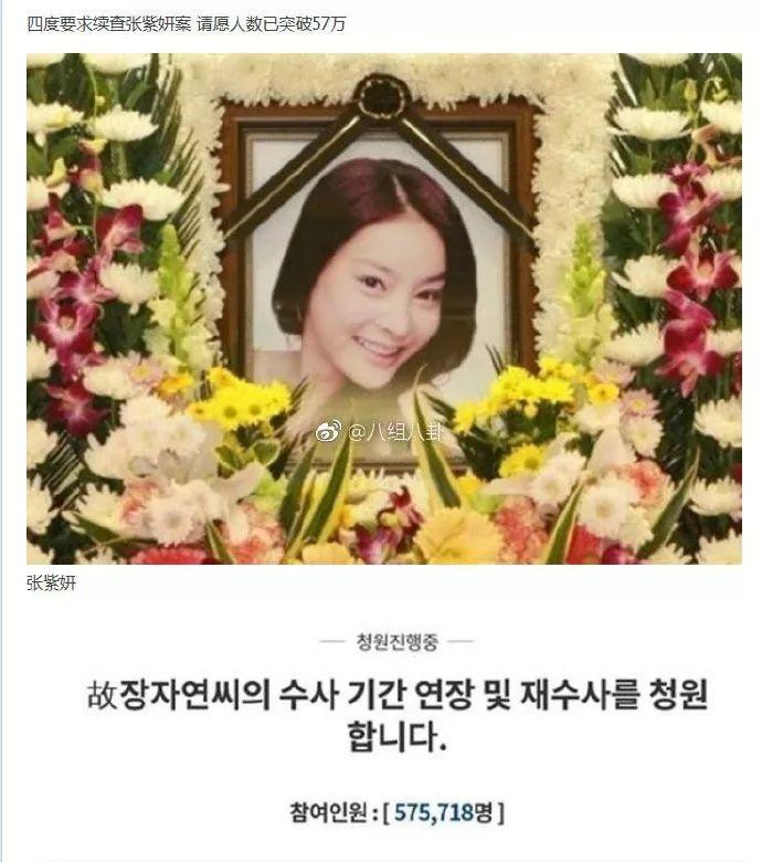 再过10天,她的案件就要超过10年诉讼时效了。现在,韩国民众第四次自愿向政府请愿,要求重新调查张紫妍自杀事件,请愿人数已经超过57万,并且数字还在上升。