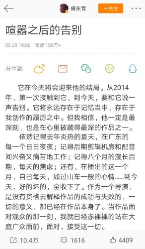 文中,傅东育承认自己思考不够缜密,对于观众的疑虑和逻辑bug,导演需要反省检讨。“在这里坦率并真诚地说声抱歉,这是导演能力问题。我应该可以在拍摄及后期中,将这些疑虑全部化解,而我没有做到,对不起。”