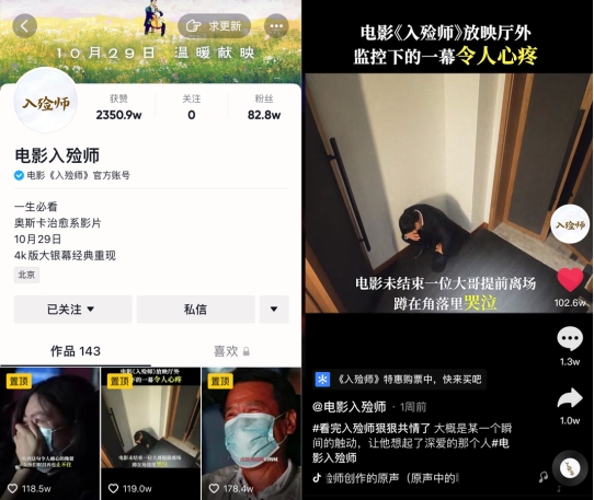 通过入殓师特殊职业采访、观众映后故事分享、“天堂留言互动”等策划,《入殓师》官抖阵地集中沉淀了一批极富普世情感能量与议题探讨价值的短视频内容。官抖中 ,一支“你愿意和入殓师握手吗?”的视频触动了无数观众,激发了大量用户的互动分享欲,更引起全网媒体的跟进探讨。随着《入殓师》相关短视频内容的接连发酵,越来越多的大众影迷构建起与影片的情感羁绊。