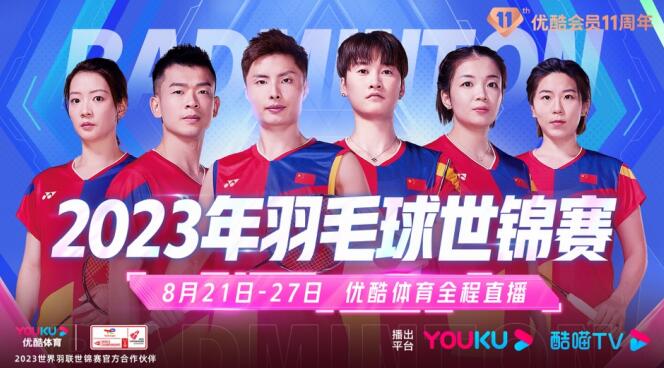 8月21日至27日,2023年世界羽毛球锦标赛在丹麦哥本哈根举办。优酷体育全程直播比赛,邀请蔡赟、鲍春来、高崚等世界冠军组成豪华解说团。作为2023世界羽联世锦赛官方合作伙伴,优酷体育宣传片、广告板一起现身赛场,为中国队加油,这是全球视频平台首次“入驻”世锦赛场地。