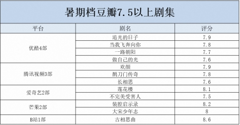 8月25日,正在优酷热播的都市情感剧《一路朝阳》豆瓣开分7.7,并持续登顶灯塔市占率榜单、云合市占率榜单TOP2,口碑与热度兼具。该剧以“大城、小事、小人物”的创作立意,真实刻画当代青年在外打拼的奋斗图景,引发大众强烈共鸣。加上《追光的日子》《做自己的光》《当我飞奔向你》,今年暑期档,优酷共有4部剧集豆瓣评分达7.5以上,位居长视频平台之首。