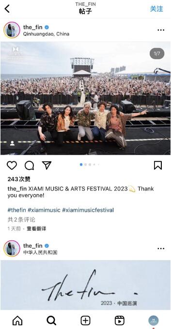 8月27日下午,The fin.表演时段,主唱Yuto带着微醺的语调,向观众感叹在阿那亚举办音乐节真是一件奇妙的事,“The sea, the music and everything, I can drink this(beer) all day!”