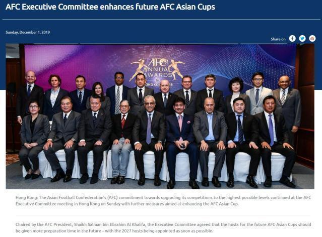 图片来源:亚足联官网截图。