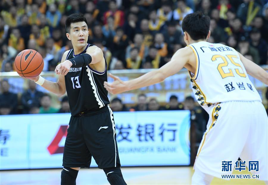 12月24日,辽宁本钢队球员郭艾伦(左)在比赛中传球。 当日,在2019-2020赛季中国男子篮球职业联赛(CBA)常规赛第21轮比赛中,辽宁本钢队客场以114比111战胜浙江广厦控股队。 新华社记者 翁忻旸 摄