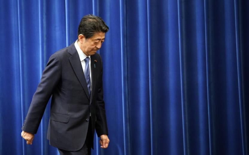 8月28日,在日本东京,安倍晋三离开记者会现场。新华社 图