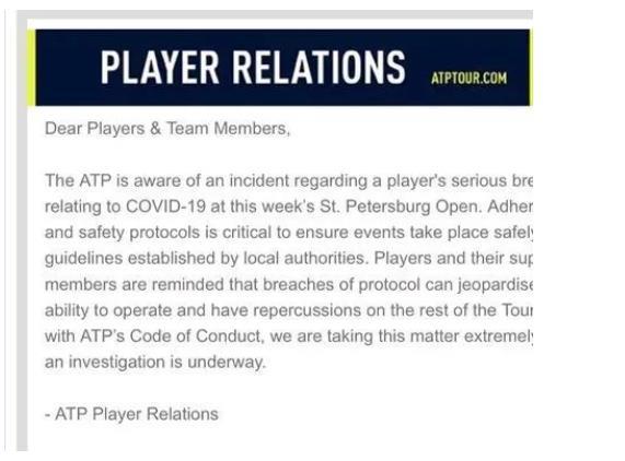 赛事主办方惊闻此事后,将情况汇报给了ATP。针对奎里的行为,ATP也在第一时间做出反应,“根据ATP行为准则,我们将严肃对待此事,进一步调查正在进行中,这样的举动可能会危及赛事的运作,并对本赛季剩下的几站巡回赛产生影响。“