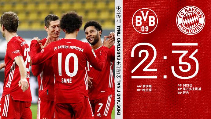 第80分钟,拜仁后场断球快速反击,莱万带球到前场直传过掉胡梅尔斯,萨内突入禁区抽射破门。仅仅过了2分钟后,多特火速追回一球。格雷罗左脚挑传过顶,哈兰德卸球趟过诺伊尔,左侧小禁区角上左脚扫射入空门。