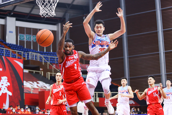 12月6日,新疆队球员刘力鹏在比赛中防守对方外援。视觉中国供图