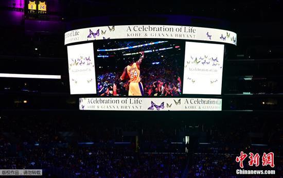 当地时间2020年2月24日,NBA巨星科比·布莱恩特与女儿吉安娜追思会于洛杉矶湖人主场斯台普斯中心举行。