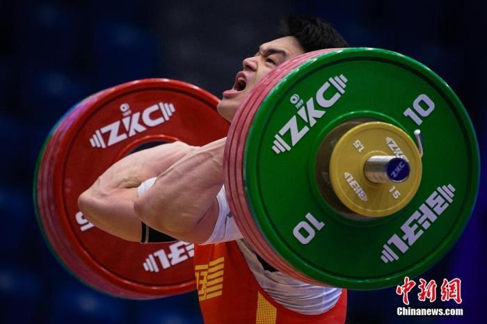 2019年举重世界杯,在男子73公斤级挺举比赛中,中国选手石智勇以198公斤的成绩打破世界纪录,并一举夺得抓举、挺举和总成绩三项冠军。中新社记者 佟郁 摄