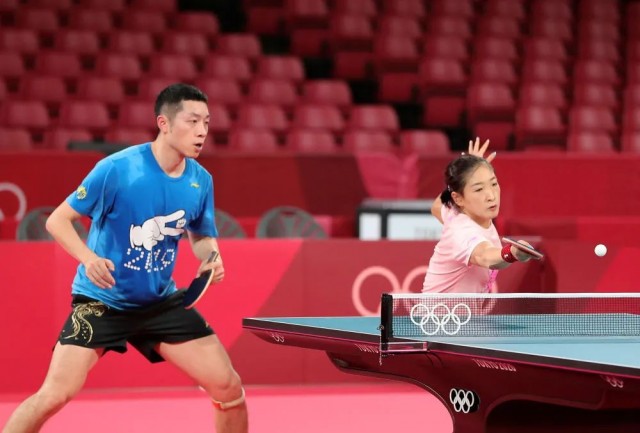 7月19日,刘诗雯(右)和许昕在训练中。新华社记者 王东震 摄