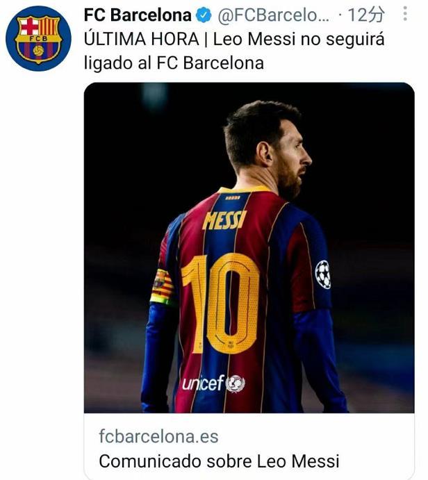 当地时间8月5日,巴塞罗那足球俱乐部在官网发布声明,确认阿根廷球星莱昂内尔·梅西将不会继续为俱乐部效力。